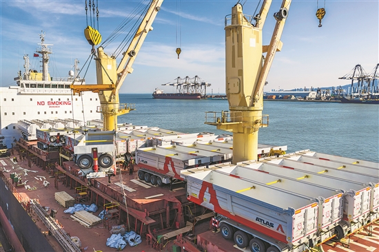 首航船舶“达喀尔快航”号装载的货物颇具代表性,既包括山东本地生产的轮胎、建材、食品加工设备,也有来自长三角的消费电子产品、纺织品,以及近年来迅猛增长的跨境电商包裹。